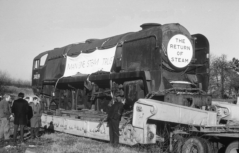 The modernisation of British Railways led to the first withdrawals of the West Country class in 1963. “Boscastle” was withdrawn in May 1965, after covering some 745,000 miles during its 19 years of service. It was then stored at Eastleigh shed before being sold to Woodham Bros scrapyard in Barry, South Wales, in September of that year.
