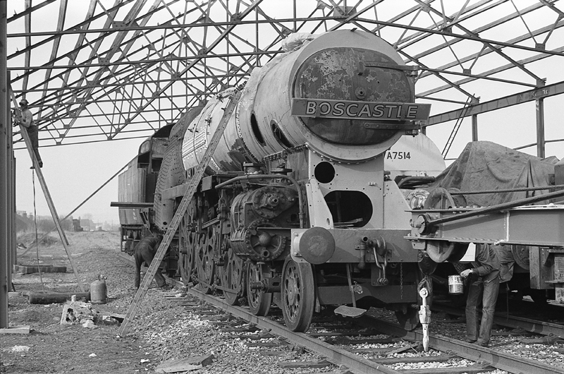 On a visit to Barry scrapyard with four friends, James Tawes was advised that “Boscastle” was in the best condition, and in November 1972 he purchased the locomotive outright. “Boscastle” arrived at the Great Central Railway on 22nd January 1973, becoming the first ex-British Railways mainline locomotive on the preserved line.