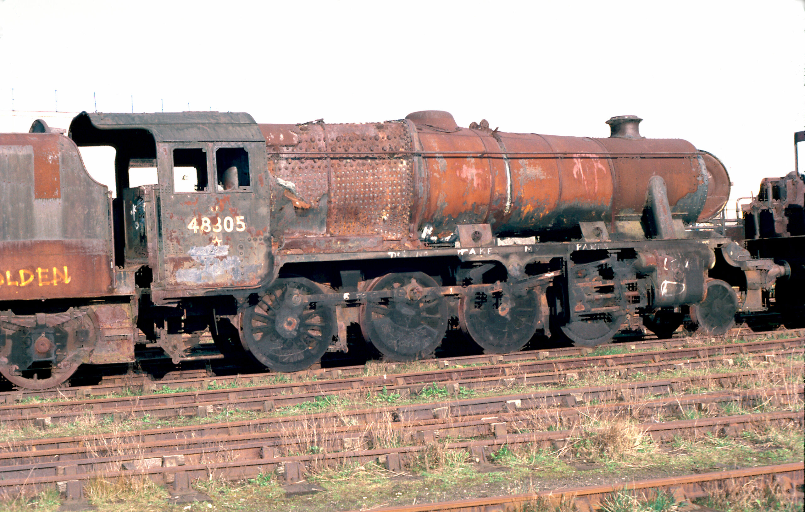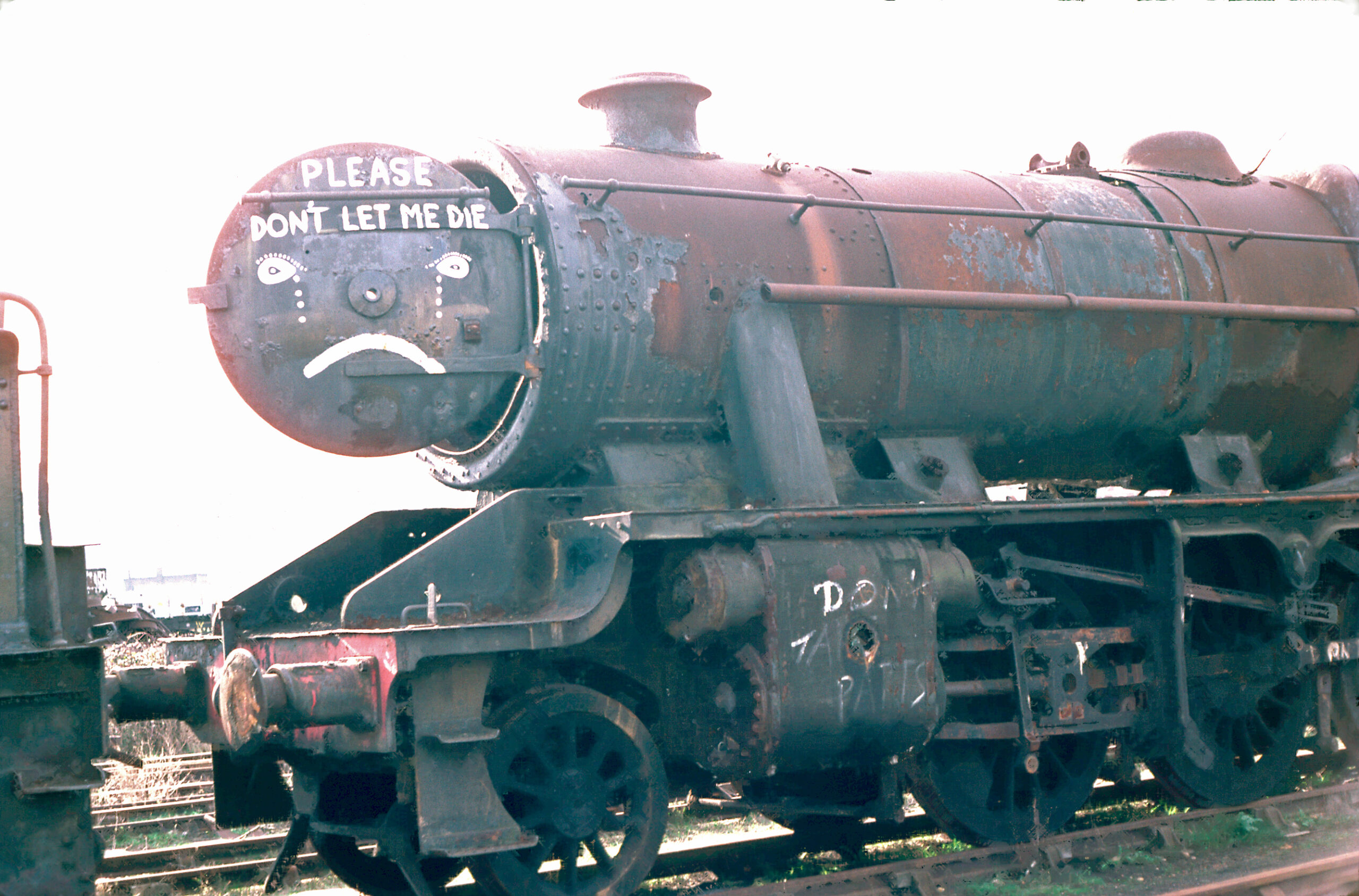 8305 was withdrawn in January 1968, the last year of steam operation on British Railways. It arrived at Woodham’s scrapyard in Barry in September 1968. Purchased for preservation from Barry, 8305 is famous for the words “Please don’t let me die” painted on its smokebox door — a plea that was answered when it arrived at the GCR, at Quorn & Woodhouse, on 20th November 1985.
