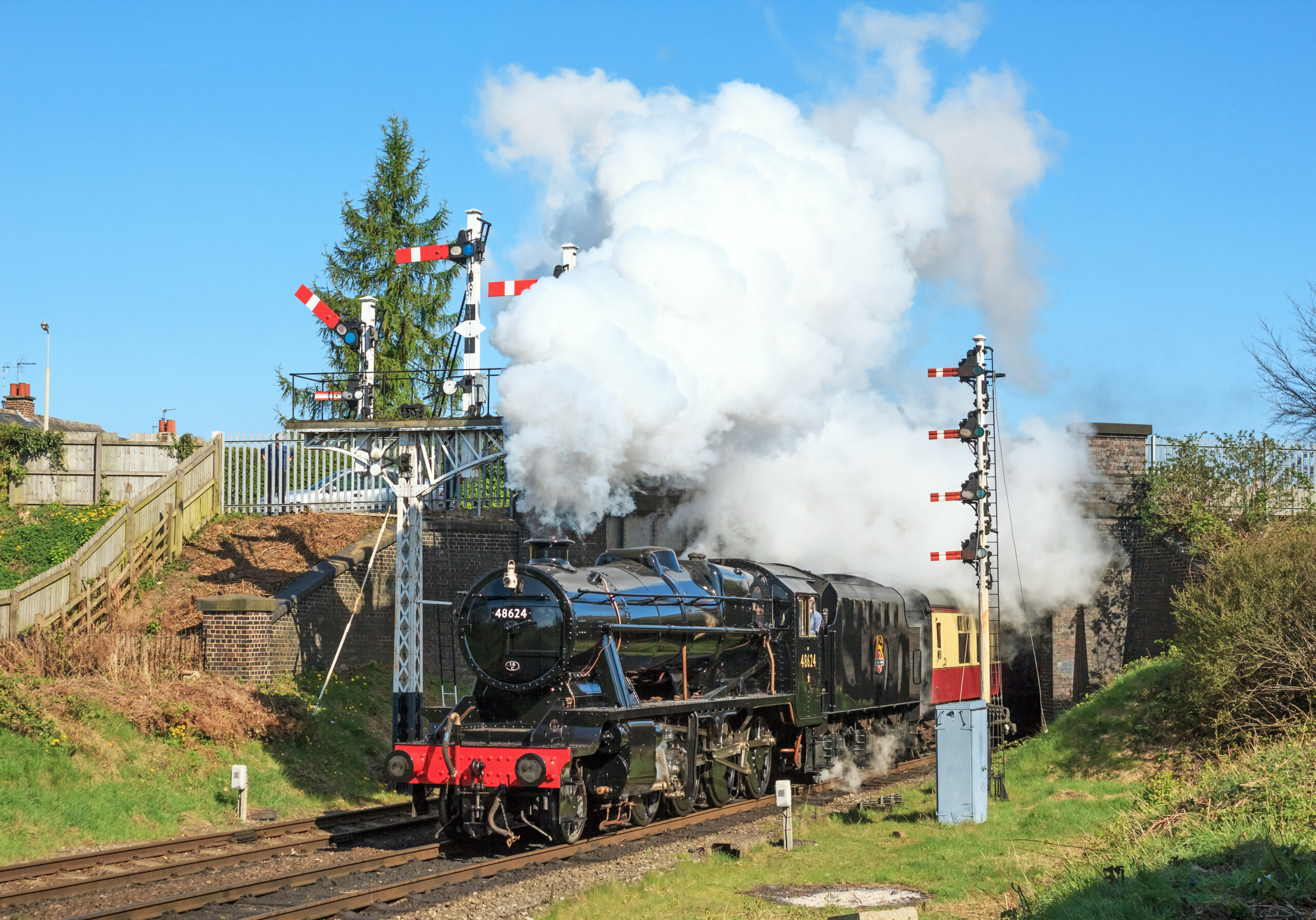 The tender currently paired with 8624 is not its original. The Barry scrapyard sold the original tender separately, so the locomotive was purchased without one. Today’s tender comes from Black 5 No. 44888, withdrawn in 1968 after attending the Derby Works open day. Although the locomotive was scrapped, the tender remained with British Railways and was used at Willesden Shed as a water carrier. It was later bought by the Severn Valley Railway as a spare before being acquired by the 8624 preservation group.