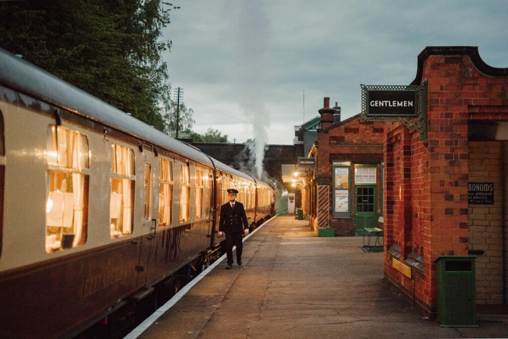 Your evening begins at the beautifully restored Edwardian Rothley Station, styled to reflect its appearance in 1912. The train arrives at 6:45pm, with guests welcomed on board from 7:00pm with freshly prepared canapés and a sparkling wine starter.